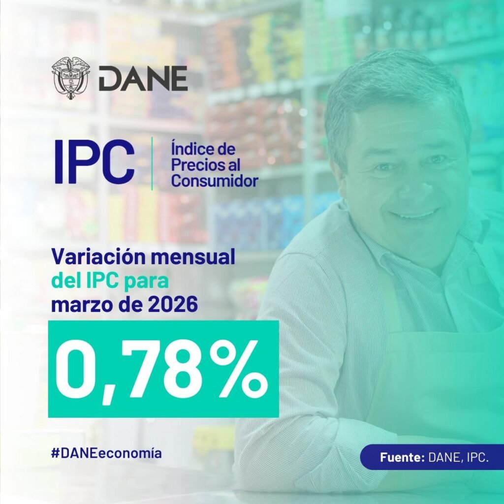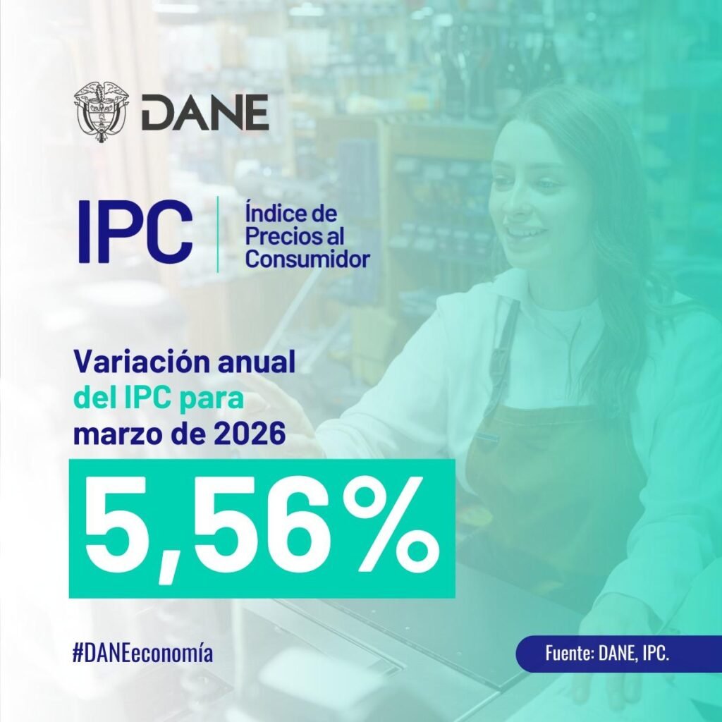 El IPC registró en marzo de 2026 una variación mensual de 0,78%, mientras que la inflación anual llegó a 5,56%, mostrando un leve aumento frente al mismo periodo de 2025 en Colombia.