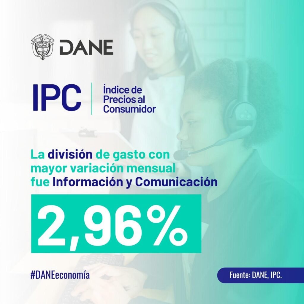 Por ejemplo, el sector de información y comunicaciones tuvo el mayor incremento mensual, con un 2,96%, impulsado principalmente por servicios de telefonía e internet.