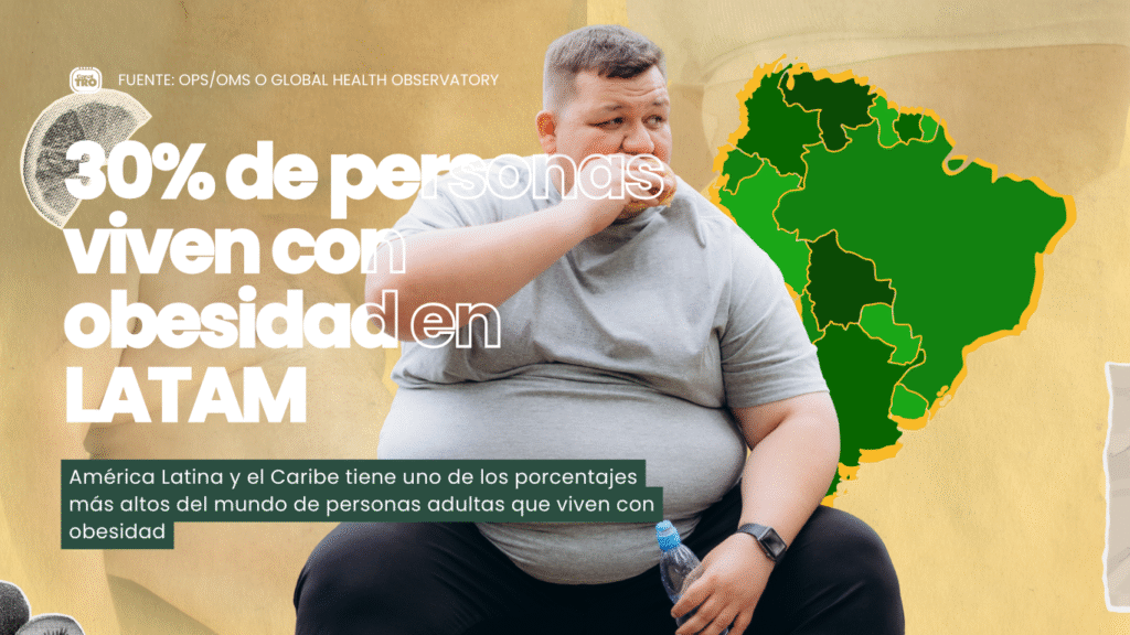 La transición nutricional, el alto costo de una dieta saludable y la urbanización acelerada han contribuido al aumento sostenido del exceso de peso en América Latina. En varios países de la región, más de un tercio de la población adulta presenta obesidad.