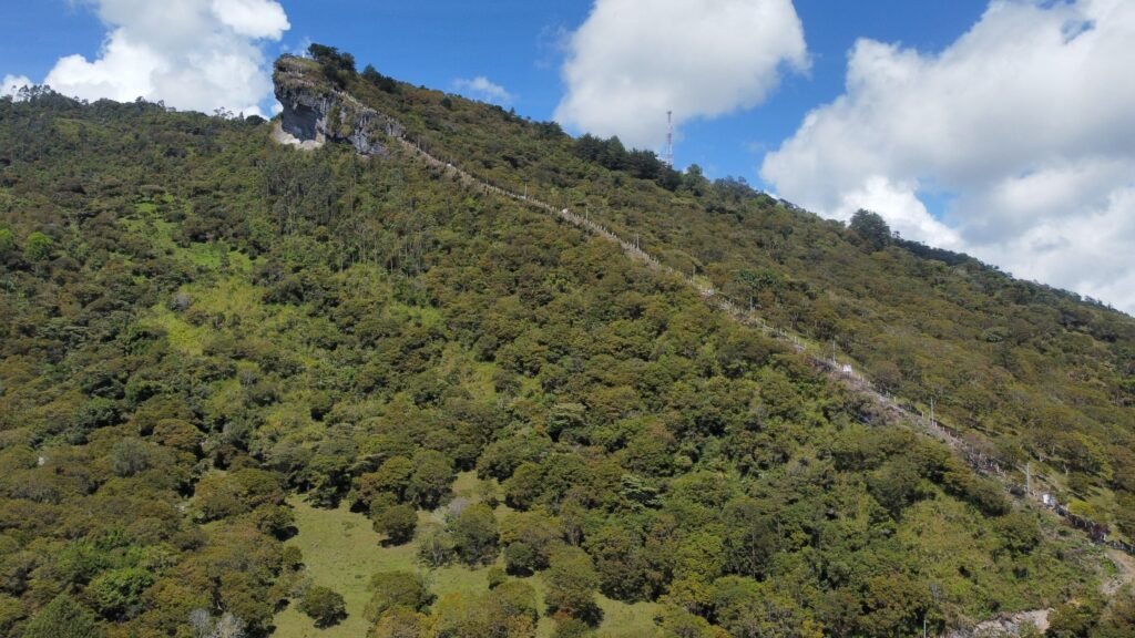 Al final del recorrido, los visitantes se encuentran con uno de los puntos más impactantes del sendero: la escultura del Milagroso del Picacho, una figura de 7,40 metros de altura.